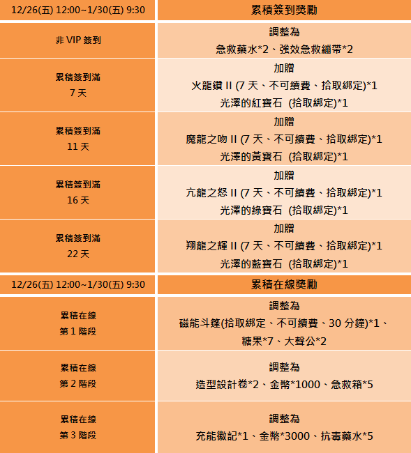 2. 背部裝備因是拾取綁定,所以領下後即會開始倒數,如有需要請盡早裝備使用減少浪費。
