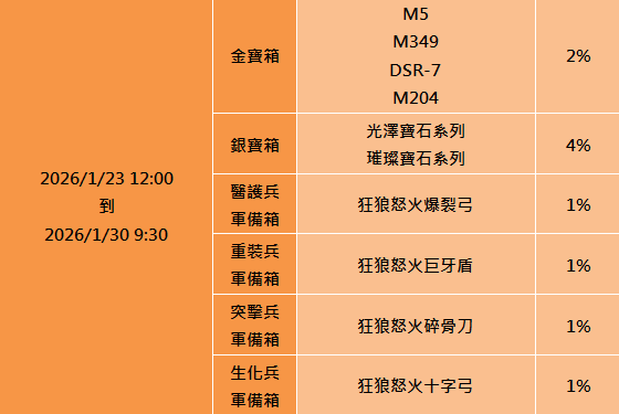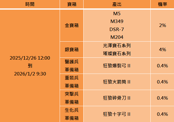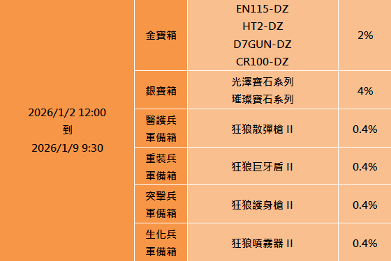 - 寶箱獎勵為機會中獎物品,玩家購買並開啟寶箱不代表即可獲得特定商品