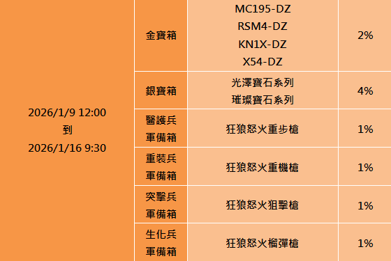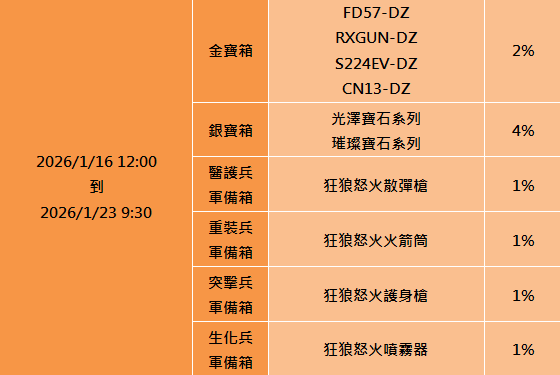 本月金寶箱提升到2%機率可以開到雪地、現代系列!